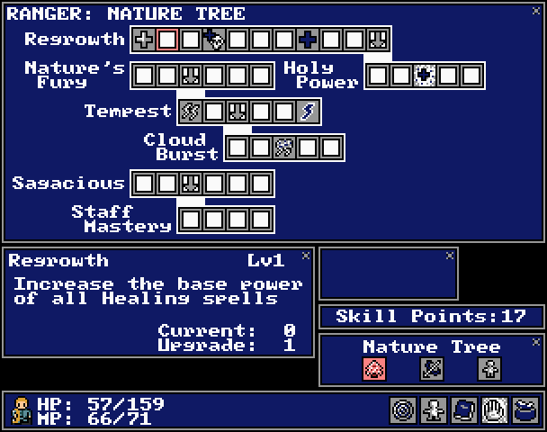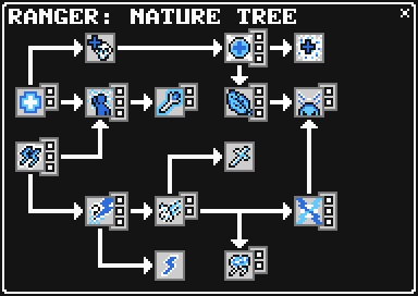 This image is a screenshot of a class's Skill Tree from NEStalgia. This image contains the menu of one of NEStalgia's classes for selecting branches in Skill Trees. |