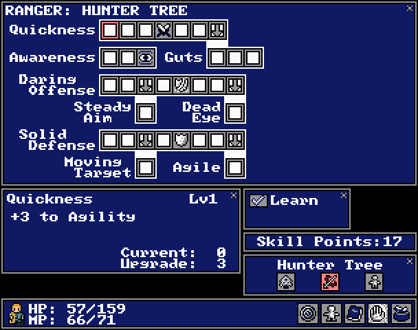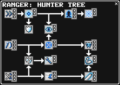 This image is a screenshot of a class's Skill Tree from NEStalgia. This image contains the menu of one of NEStalgia's classes for selecting branches in Skill Trees.